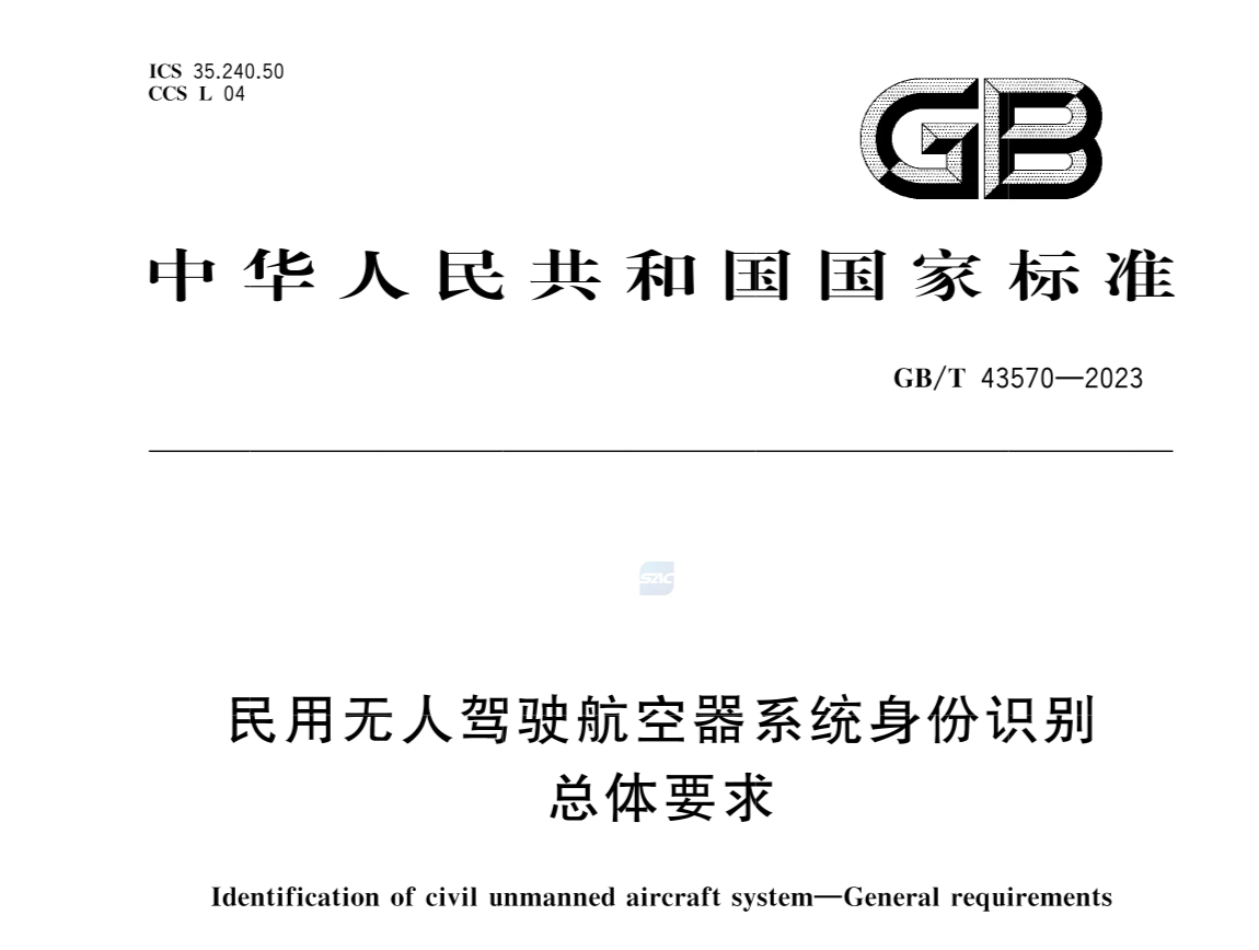 GB/T 43570-2023《民用无人驾驶航空器系统身份识别 总体要求》规定了无人机身份识别的系统架构、信息内容、功能要求和安全要求,实现无人机可识别、可追溯。