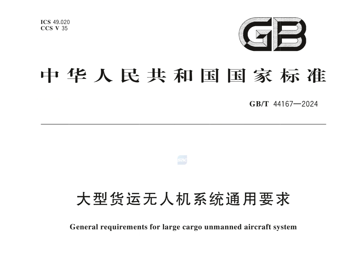 GB/T 44167-2024《大型货运无人机系统通用要求》规定了大型货运无人机的技术要求、货舱要求、地面控制站要求、安全要求和试验方法。